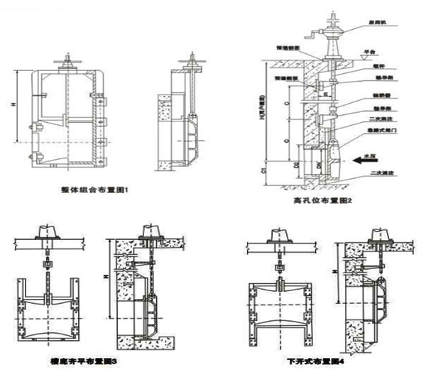 1、選用閘門(mén)時(shí)應(yīng)注明H值(閘門(mén)中心至啟閉機(jī)底部平臺(tái)高度);